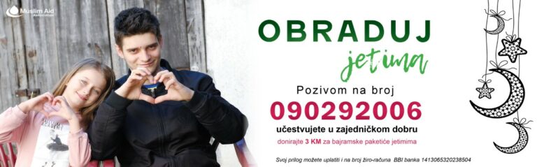 01.04.2022Humanitarna akcija “Obraduj jetima”Podijelimo radost Bajrama sa najmlađima. Pridružite nam se u zajedničkom dobru da podarimo osmjeh jetimima…Saznaj više